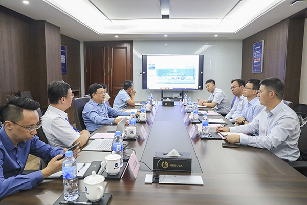 劉震博士向劉安民一行介紹星云股份的創(chuàng)新成果